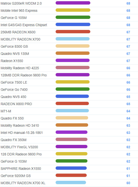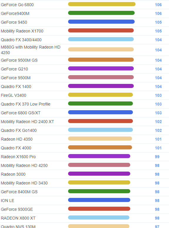 | 1729 | GeForce 8400M GS | 98 |