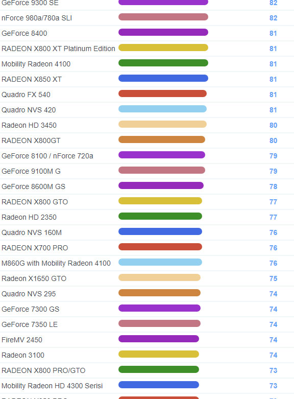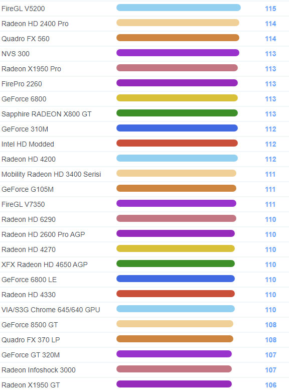 | 1693 | Mobility Radeon HD 3400 Serisi | 111 |