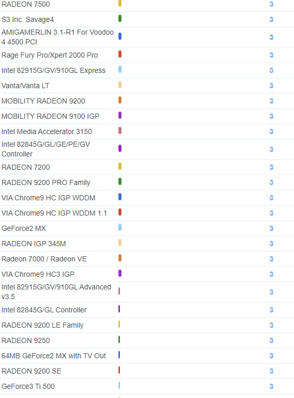 | 2188 | RADEON 9200 LE Family | 3 |