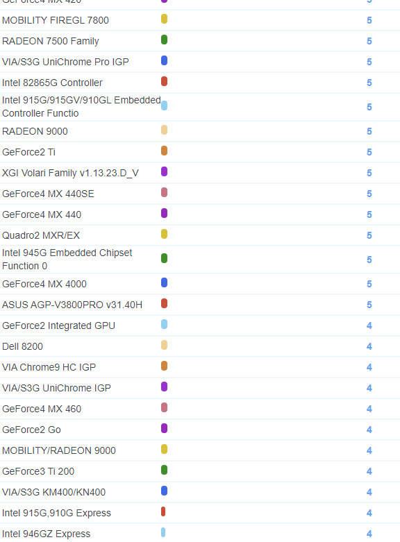 | 2127 | GeForce4 MX 440 | 5 |