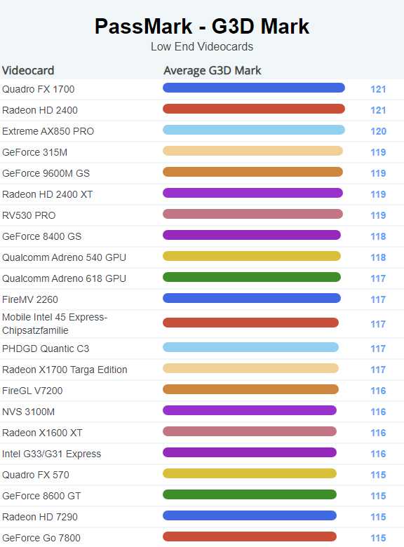 | 1667 | GeForce 8400 GS | 118 |