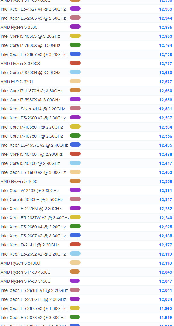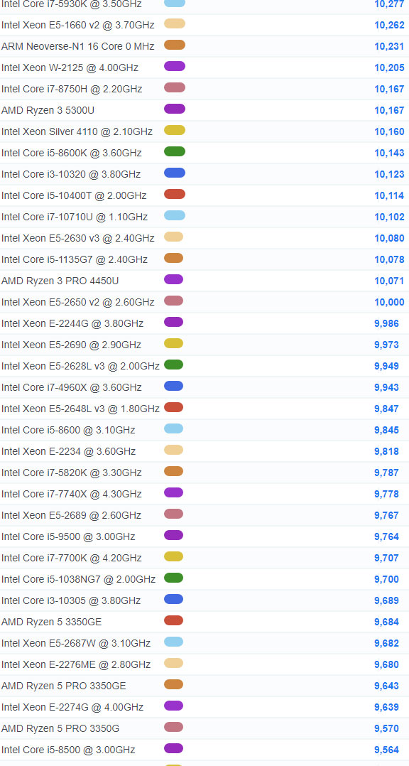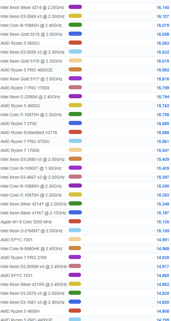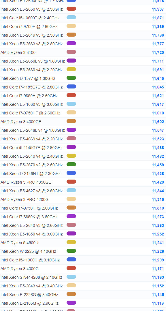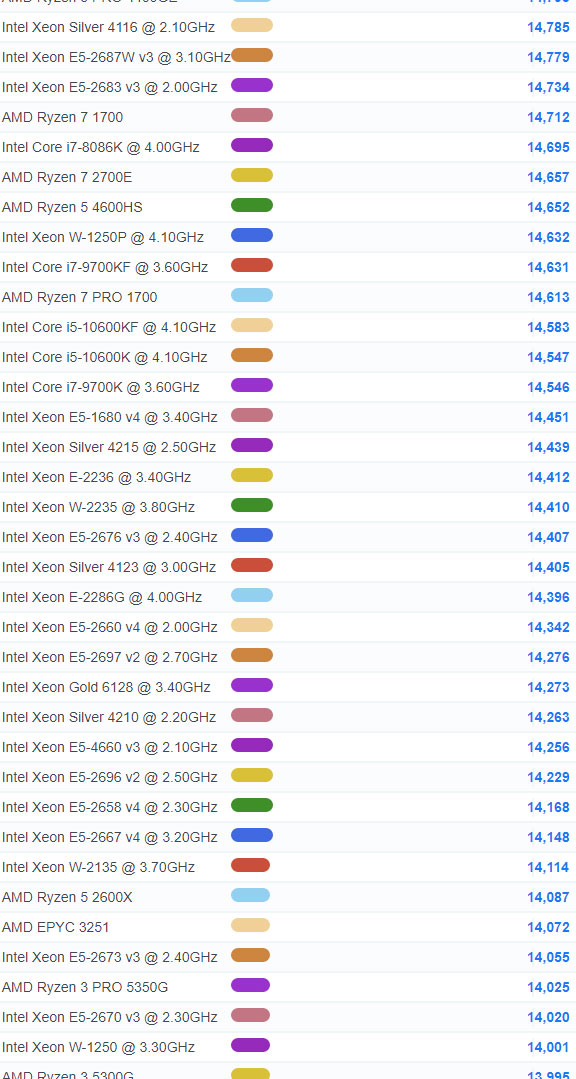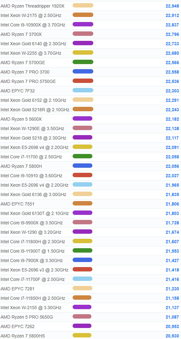 | 77 | Intel Xeon W-2275 @ 3.30GHz | 27,348 |