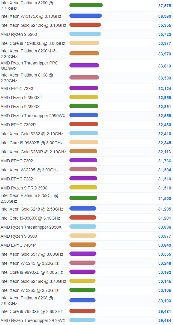 | 33 | Intel Xeon Platinum 8280 @ 2.70GHz | 37,575 |