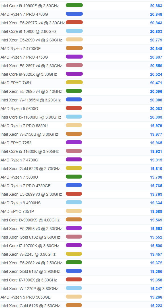 | 21 | AMD Ryzen 9 5950X | 46,151 |