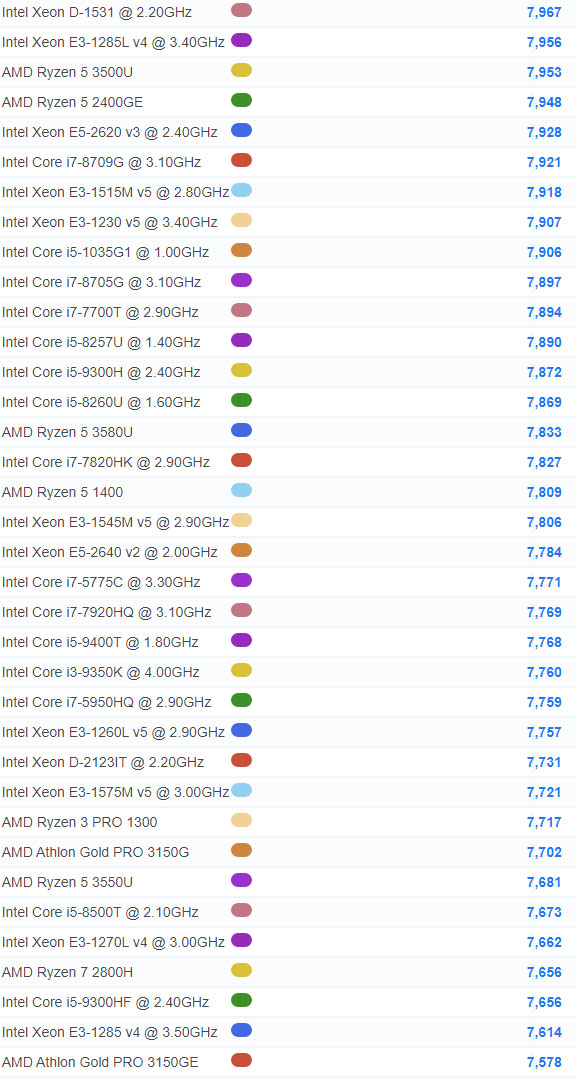 | 795 | AMD Ryzen 5 2500U | 6,618 |