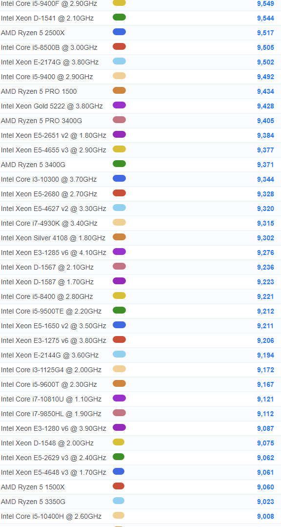 | 779 | Intel Core i3-9100F @ 3.60GHz | 6,779 |