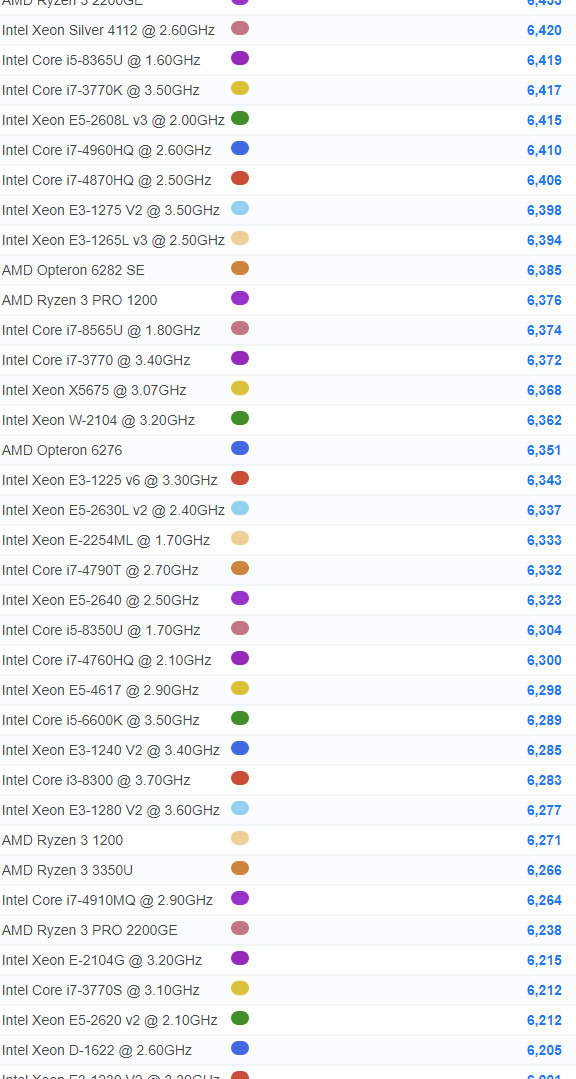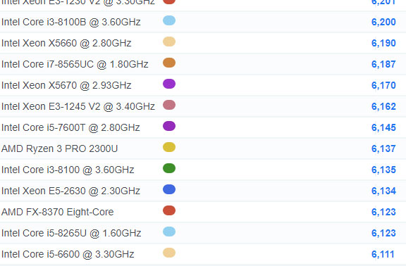 | 863 | Intel Core i3-8100 @ 3.60GHz | 6,135 |