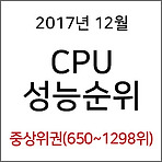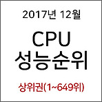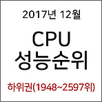 CPU 성능순위 / 성능비교 / 벤치마크 상위권, 2017년 12월 High End CPUs Updated 5th of December 2017 구분 순위 상세보기 상위권 1~649 http://090501.tistory.com/137 중상위권 650~1298 http://090501.tistory.com/138 중하위권 1299~1947 http://090501.tistory.com/139 하위권 1948~2597 http://090501.tistory.com/140 'Ctrl + F'로 모델을 바로 검색하세요. 모바일에서는 '페이지 내에서 찾기 기능'을 사용하여 검색하면 됩니다. Rank Model Mark 1 Intel Core i9-7980XE @ 2.60GHz 27,822 2 Intel Core..