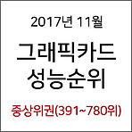 그래픽카드 성능순위/성능비교/벤치마크 상위권(1~390위), 2017년 11월 High End Videocards Updated 19th of November 2017 구분 순위 상세보기 상위권 1~390 http://090501.tistory.com/121 중상위권 391~780 http://090501.tistory.com/122 중하위권 781~1170 http://090501.tistory.com/123 하위권 1171~1560 http://090501.tistory.com/124 모델별 검색은 차트이미지 하단의 테이블에서 확인이 가능합니다. 차트이미지와 테이블은 같은 내용입니다. 'Ctrl + F'로 모델을 바로 검색하세요. 모바일에서는 '페이지 내에서 찾기 기능'을 사용하여 검색하면 됩니다. ..