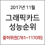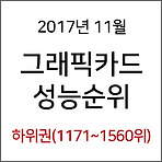 그래픽카드 성능순위/성능비교/벤치마크 하위권(1171~1560위), 2017년 11월 Low End Videocards Updated 19th of November 2017 구분 순위 상세보기 상위권 1~390 http://090501.tistory.com/121 중상위권 391~780 http://090501.tistory.com/122 중하위권 781~1170 http://090501.tistory.com/123 하위권 1171~1560 http://090501.tistory.com/124 모델별 검색은 차트이미지 하단의 테이블에서 확인이 가능합니다. 차트이미지와 테이블은 같은 내용입니다. 'Ctrl + F'로 모델을 바로 검색하세요. 모바일에서는 '페이지 내에서 찾기 기능'을 사용하여 검색하면 됩니..