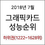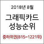 그래픽카드(Graphiccard), 비디오카드(Videocard) 성능순위 / 성능비교 / 벤치마크 2018년 9월 중하위권 Updated 10th of September 2018 성능순위 구분 순위 상세보기 그래픽카드 상위권 1~410 바로가기 그래픽카드 중상위권 411~820 바로가기 그래픽카드 중하위권 821~1230 바로가기 그래픽카드 하위권 1230~1641 바로가기 그래픽카드 순위 이미지 하단에 모델 검색이 가능한 테이블 차트가 있습니다. PC화면에서 그래픽카드 모델 검색은 'Ctrl + F' 누르면 됩니다. 모바일(삼성인터넷)에서 그래픽카드 모델 검색은 메뉴 > '페이지 내에서 찾기'를 선택 모바일(네이버)에서 그래픽카드 모델 검색은 메뉴 > '페이지내 검색'을 선택 Rank Model Ma..