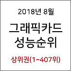 그래픽카드(Graphiccard), 비디오카드(Videocard) 성능순위 / 성능비교 / 벤치마크 2018년 9월 중상위권 Updated 10th of September 2018 성능순위 구분 순위 상세보기 그래픽카드 상위권 1~410 바로가기 그래픽카드 중상위권 411~820 바로가기 그래픽카드 중하위권 821~1230 바로가기 그래픽카드 하위권 1230~1641 바로가기 그래픽카드 순위 이미지 하단에 모델 검색이 가능한 테이블 차트가 있습니다. PC화면에서 그래픽카드 모델 검색은 'Ctrl + F' 누르면 됩니다. 모바일(삼성인터넷)에서 그래픽카드 모델 검색은 메뉴 > '페이지 내에서 찾기'를 선택 모바일(네이버)에서 그래픽카드 모델 검색은 메뉴 > '페이지내 검색'을 선택 Rank Model Ma..