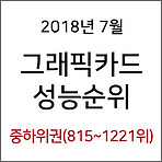 그래픽카드(Graphiccard), 비디오카드(Videocard) 성능순위 / 성능비교 / 벤치마크 2018년 8월 Updated 2nd of August 2018 성능순위 구분 순위 상세보기 그래픽카드 상위권 1~407 바로가기 그래픽카드 중상위권 408~814 바로가기 그래픽카드 중하위권 815~1221 바로가기 그래픽카드 하위권 1222~1629 바로가기 PC화면에서 그래픽카드 모델 검색은 'Ctrl + F' 누르면 됩니다. 모바일(삼성인터넷)에서 그래픽카드 모델 검색은 메뉴 > '페이지 내에서 찾기'를 선택 모바일(네이버)에서 그래픽카드 모델 검색은 메뉴 > '페이지내 검색'을 선택 Rank Model Mark 815 GeForce GT 720M 558 816 Radeon HD 6620G 558 ..